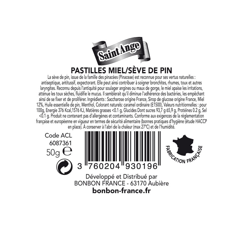 Pastilles Saint-Ange Miel Sève de pin 50g Bonbon France