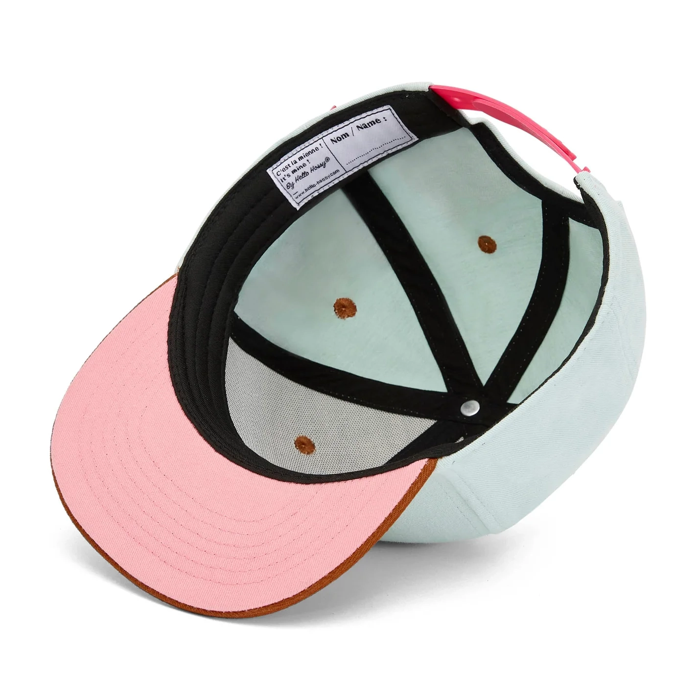 Optez pour la Casquette Mini Water Green de Hello Hossy, conçue en coton biologique avec visière plate et attache ajustable, parfaite pour les enfants de 6 ans et plus.