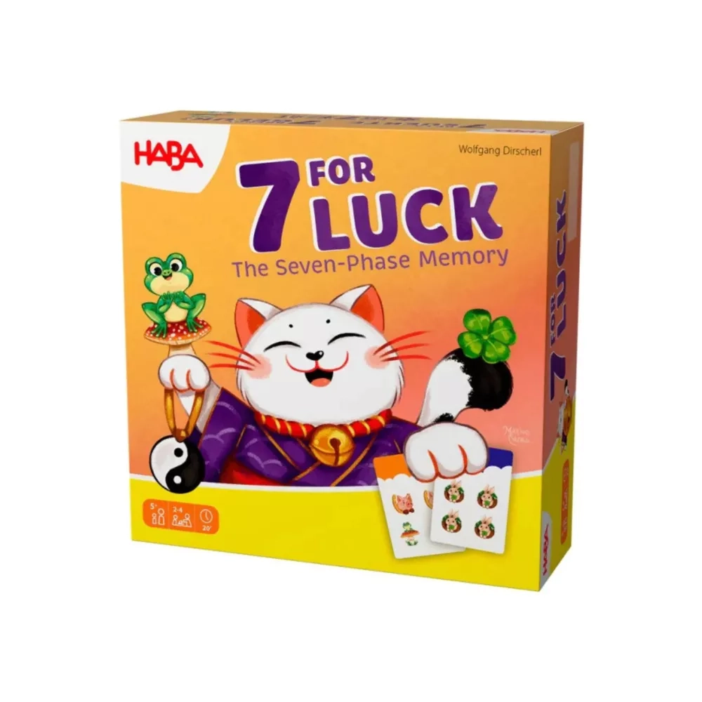 7 pour la chance de HABA est un jeu de mémoire coloré pour 2 à 4 joueurs dès 5 ans. Les joueurs accomplissent sept missions en retrouvant des animaux porte-bonheur cachés, ajoutant à chaque succès une nouvelle couleur à leur arc-en-ciel. Ce jeu stimule la mémoire, la concentration et la logique, avec des parties d'environ 20 minutes. Les règles simples et les illustrations joyeuses en font un choix idéal pour les familles et les jeunes enfants.
