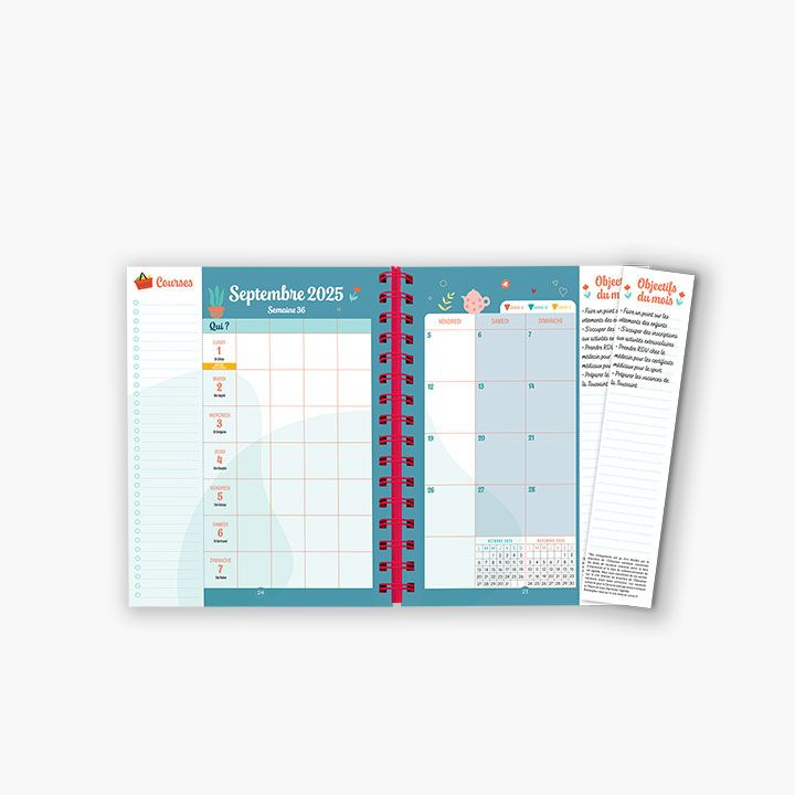 Optimisez l'organisation de votre grande famille avec l'Agenda de ma tribu Mémoniak 2026, offrant jusqu'à 9 colonnes personnalisables, des recettes mensuelles et des outils pratiques pour simplifier votre quotidien.