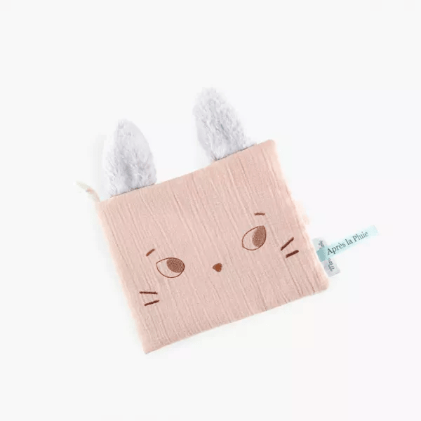 Album photo textile rose 'Après la pluie' de Moulin Roty, avec 9 pochettes, fermeture velcro et lien d'attache. Idéal dès la naissance pour conserver les souvenirs de bébé.