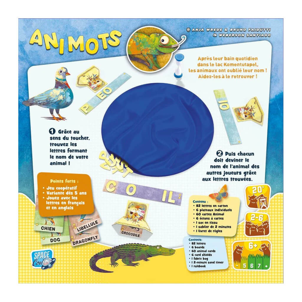 Animots est un jeu coopératif où les joueurs aident des animaux à retrouver leur nom en reconstituant des mots à l'aide de lettres tactiles. Idéal pour 2 à 6 joueurs dès 6 ans, ce jeu éducatif allie réflexion et amusement.