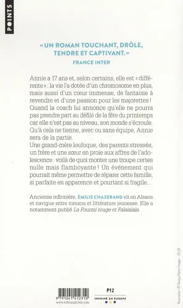 """ Annie au milieu est le nouveau livre à destination des adolescents d’Emilie Chazerand, autrice d’une quarantaine de livres pour enfants et adolescents. Dans ce nouveau livre, nous suivons Annie, adolescente de 17 ans, et sa famille. Annie a un chromosome en plus, elle a la trisomie 21, Annie a également un travail, a une passion pour les majorettes, a un grand frère, une petite sœur, des parents et une grand-mère ! Le jour où son entraineuse de majorettes la refuse pour le défilé, c’est le drame dans sa famille, qui décide de défiler ensemble. Pour la fratrie, ce n’est pas évident ! On va suivre les trois frères et sœurs chapitre après chapitre, dans cette merveilleuse aventure !