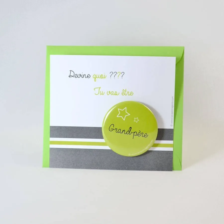 Carte accompagnée d'un badge à épingle qui se portera fièrement suite à l'excellente nouvelle…