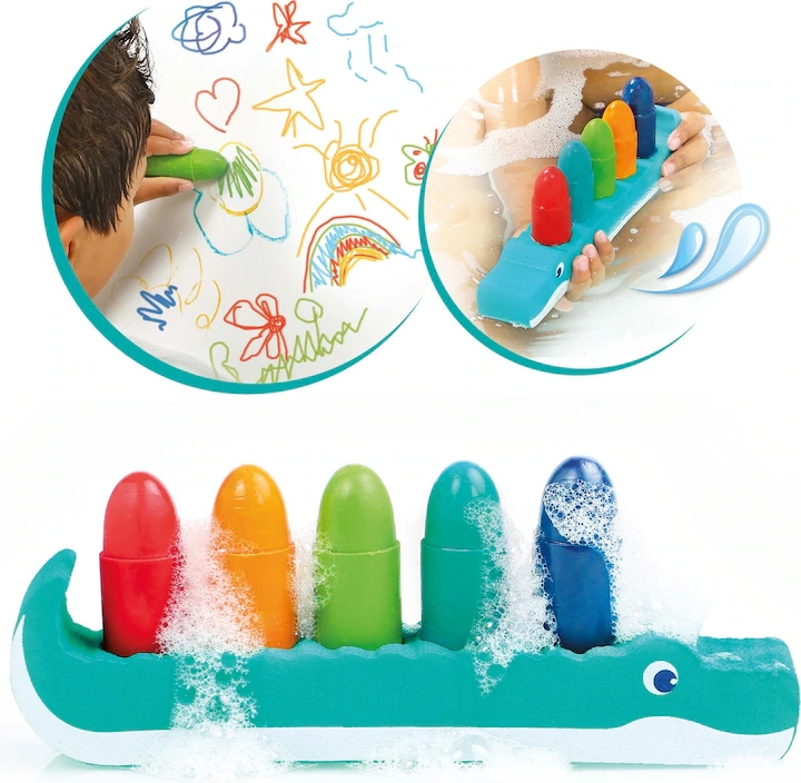 Le coffret Aquacolor de Ludi transforme le bain en un moment créatif avec un miroir flottant et quatre crayons effaçables.