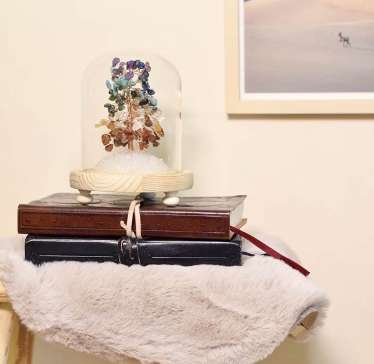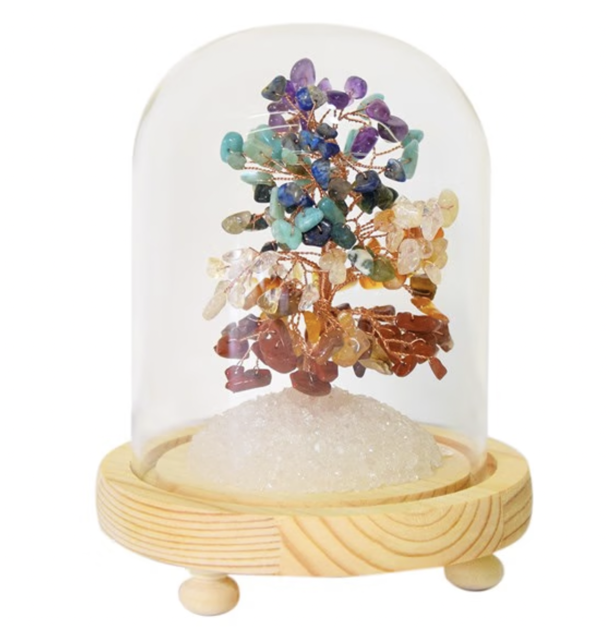 Finement orné de pierres naturelles aux couleurs des 7 Chakras, cet arbre du bonheur saura s'intégrer harmonieusement dans votre intérieur grâce à son design équilibré et sa mise en beauté sous une cloche en verre. L'arbre du bonheur est le symbole de la vie, du lien entre la terre et l'infini céleste. Ces 7 pierres ont été sélectionnées en fonction de leur couleur et de leurs bienfaits pour vibrer en harmonie avec vos chakras. Elles vous aideront à identifier vos blocages et à vous en libérer. Elles équilibreront vos centres énergétiques et auront un impact positif sur votre bien-être, vos émotions et vos pensées.