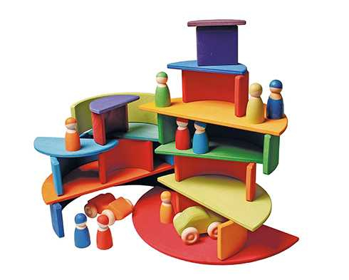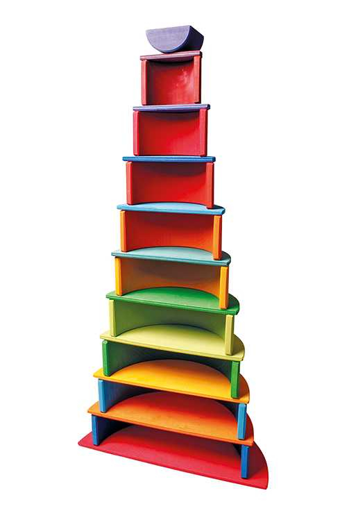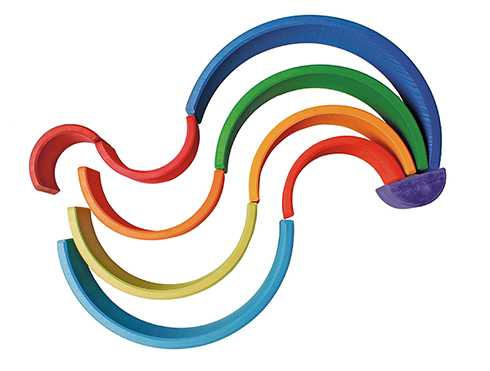 Un arc-en-ciel en bois Grimm's de 10 arcades, pour les plus petits de 1 an un très joli jeu de construction mais également chouette pour les enfants plus grands poru créer un pont, une grotte, un tunnel, un berceau pour les poupées, ....