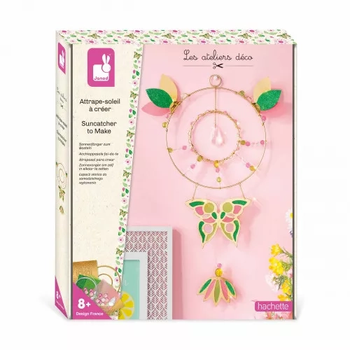 Kit créatif 'Attrape-Soleil à Créer' de Janod pour enfants dès 8 ans. Réalisez une suspension lumineuse en assemblant des éléments dorés, des perles et du papier calque. Développe la motricité fine et la concentration. Dimensions : 45 x 26 x 0,5 cm.