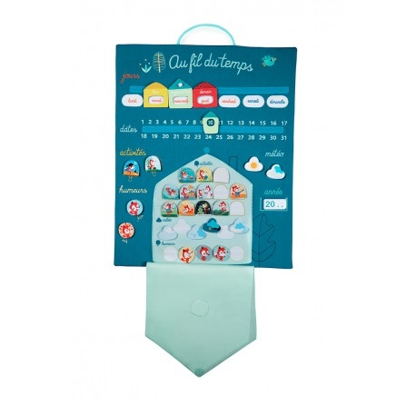 Le calendrier "Au fil du temps" de Lilliputiens est un outil éducatif en tissu permettant aux enfants dès 3 ans d'apprendre de manière ludique les notions de jours, mois, saisons, météo et émotions. Avec ses éléments en velcro repositionnables, il favorise l'autonomie et s'intègre parfaitement à la décoration de la chambre.