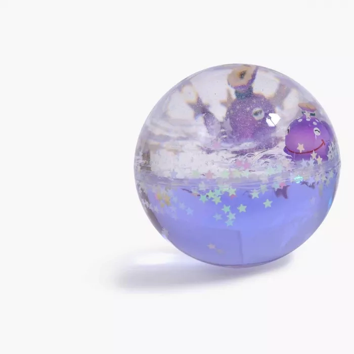 Découvrez la balle rebondissante Baleines de Moulin Roty : une balle transparente de 6 cm contenant deux baleines nageant parmi des étoiles scintillantes. Parfaite pour les enfants dès 3 ans.
