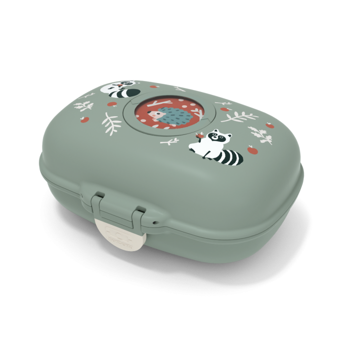 Les enfants pourront compter sur le petit raton laveur gourmand de la boite à goûter MB Gram vert Raccoon pour protéger leur collation ! Grand amateur de pommes, il essaiera peut-être de piquer un ou deux petits biscuits … mais pas plus, c’est promis !