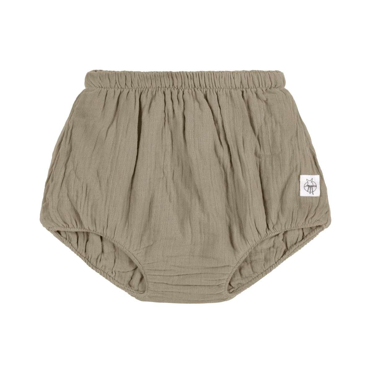 Bloomer en mousseline GOTS de Lässig, en coton biologique certifié, couleur olive. Coupe ample avec taille élastique pour un confort optimal. Idéal pour les journées chaudes.
