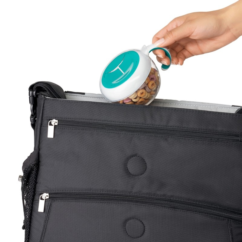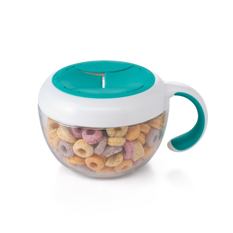 La boîte à collations Flippy a aussi un couvercle de voyage transparent qui tient les collations frais.