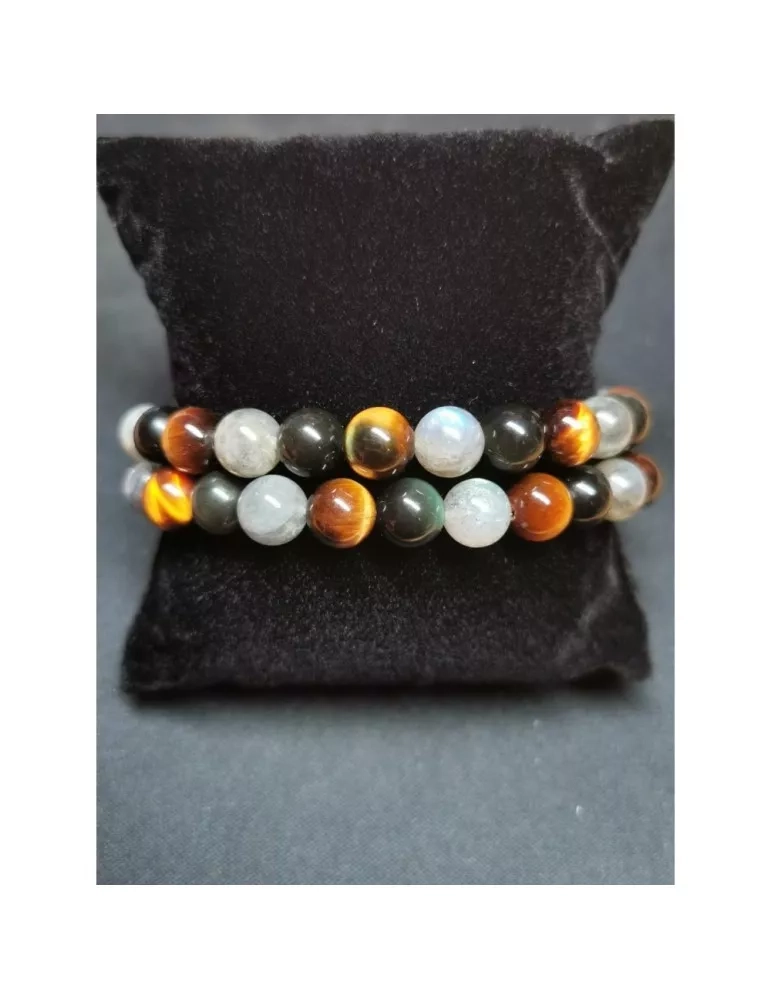 Labradorite, œil de tigre et obsidienne - Bracelet de perles