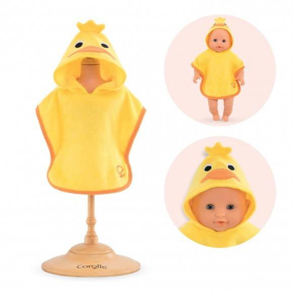 Adorables capes de bain Corolle pour poupon de 36 cm, disponibles en modèles grenouille, pingouin et canard. Parfaites pour sécher et réchauffer votre poupon après le bain.