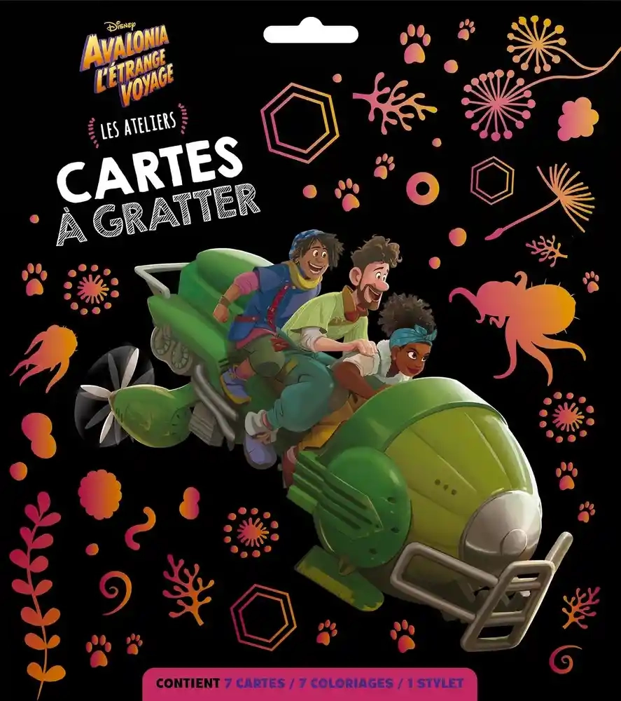 Découvrez la pochette de cartes à gratter 'Avalonia, L'Étrange Voyage' de Hachette Jeunesse. Un kit créatif pour enfants dès 5 ans, inspiré du film Disney, incluant 7 cartes à gratter, un stylet et un livret de coloriages.