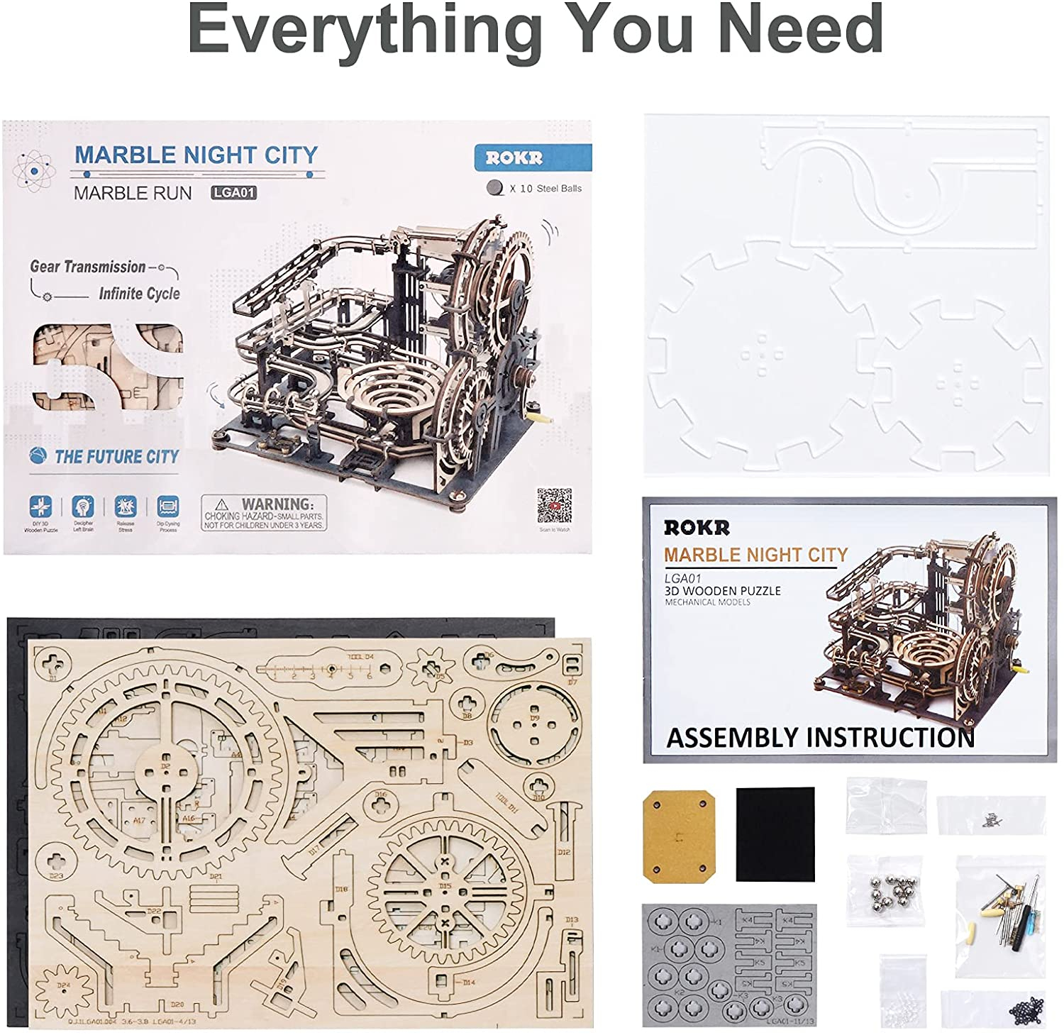 Casse-tête Puzzle 3D en bois – Circuit de billes "Marble Night City", Robotime, LGA01 (32,5 x 21,4 x 22,8 cm)