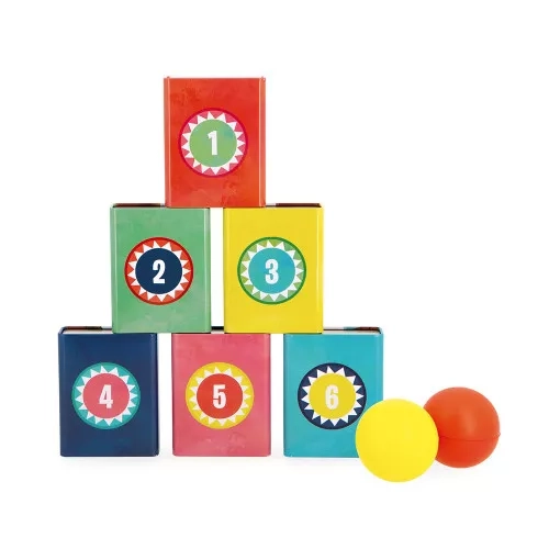 On dirait que cet ours veut conserver le meilleur score … Dès 3 ans, les enfants vont se hisser en haut du classement avec ce jeu de chamboule-tout ! Pour cela, il faudra faire preuve d'adresse et viser juste. Leur objectif : faire tomber un maximum de boîtes en un minimum de lancer ! Ce chamboule-tout se compose de 6 boîtes en métal rectangulaires et de 2 balles en mousse. Pour toujours plus de possibilité, vous pouvez retourner les boîtes face numérotée : additionnez les points ! Rien de plus amusant qu'un jeu de lancer pour inciter les enfants à faire preuve de coordination et de concentration. C'est un jeu de plein air idéal pour animer un anniversaire ou une après-midi jeux en famille, tout le monde peut jouer ! Monsieur Ours a du caractère, mais nous sommes sûrs qu'il saura reconnaître votre victoire dans la bonne humeur. Ce chamboule-tout fait partie de notre gamme APPLEPOP, une collection de jeux funs et décalés inspirée de l’univers de la fête foraine.