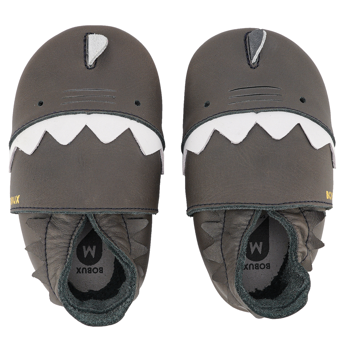 Les chaussons en cuir Soft Soles Requin de Bobux offrent confort et sécurité aux petits pieds, avec un design ludique et des matériaux de qualité.