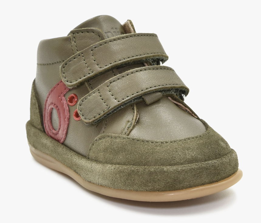 Offrez à votre enfant le meilleur départ avec les chaussures premiers pas Benjie en cuir kaki et rouge, pointure 24. Conçues pour accompagner les premiers pas de votre enfant, ces chaussures allient confort, souplesse et style.