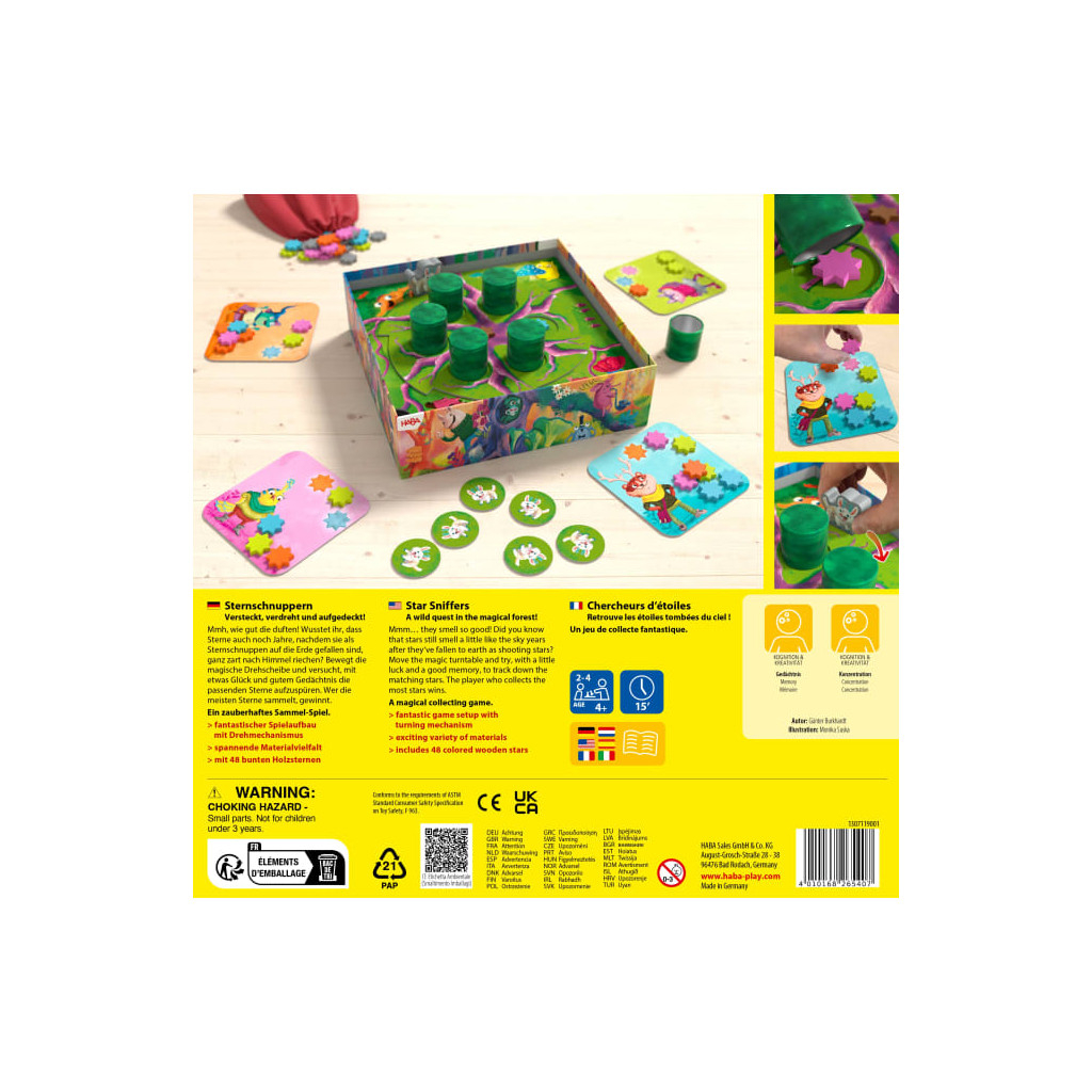Chercheurs d’étoiles de HABA est un jeu éducatif captivant pour les enfants dès 4 ans, combinant mémoire et collecte. Grâce à un plateau rotatif et des étoiles en bois colorées, les joueurs partent à la recherche d'étoiles tombées du ciel, développant ainsi leurs compétences cognitives tout en s'amusant.
