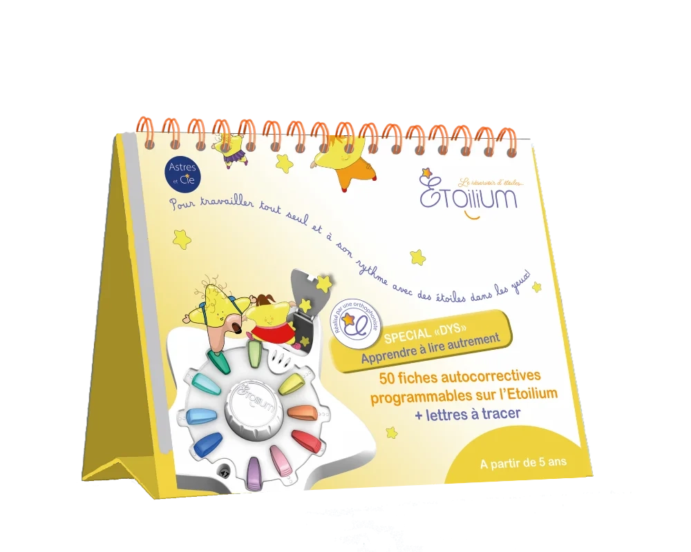 Le Chevalet "Apprendre à lire autrement – spécial dys" d'Étoilium est un outil pédagogique destiné aux enfants dès 5 ans, notamment ceux présentant des troubles DYS, pour faciliter l'apprentissage de la lecture de manière ludique et progressive.