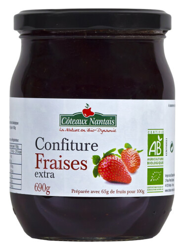 Confiture fraises bio (au sucre de canne bio) 690 g Côteaux Nantais