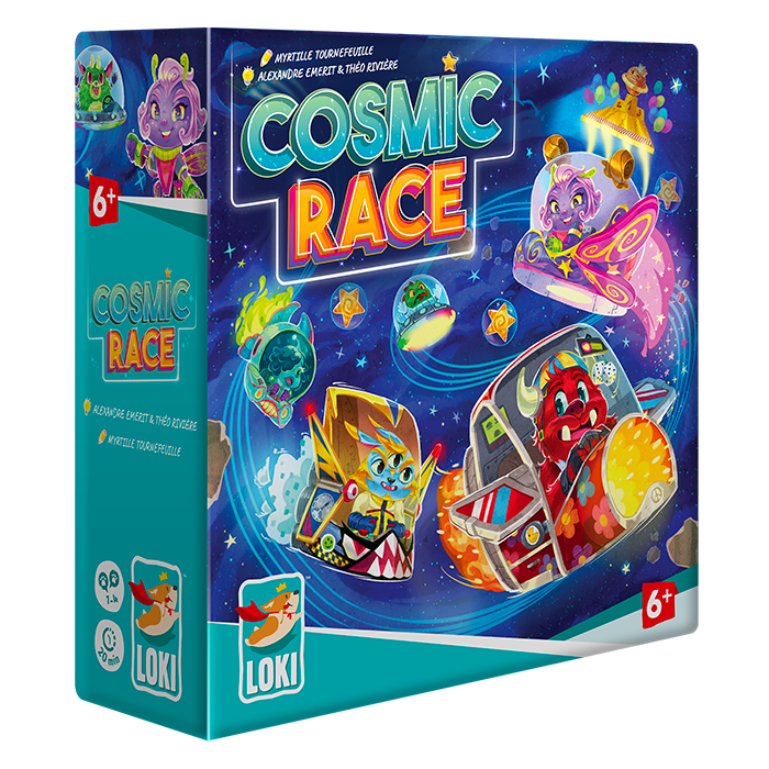 Cosmic Race est un jeu de société intergalactique mêlant course, mémoire et stratégie, conçu pour 1 à 4 joueurs dès 6 ans. Planifiez votre trajectoire, évitez les obstacles et collectez des étoiles pour remporter la victoire. Un jeu captivant pour toute la famille !