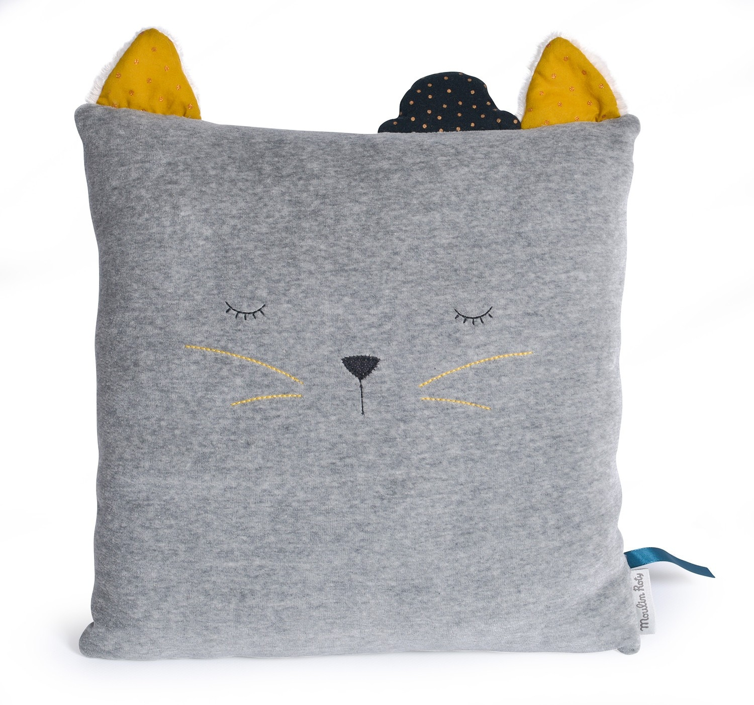 Coussin chat gris clair - Les Moustaches - Moulin Roty