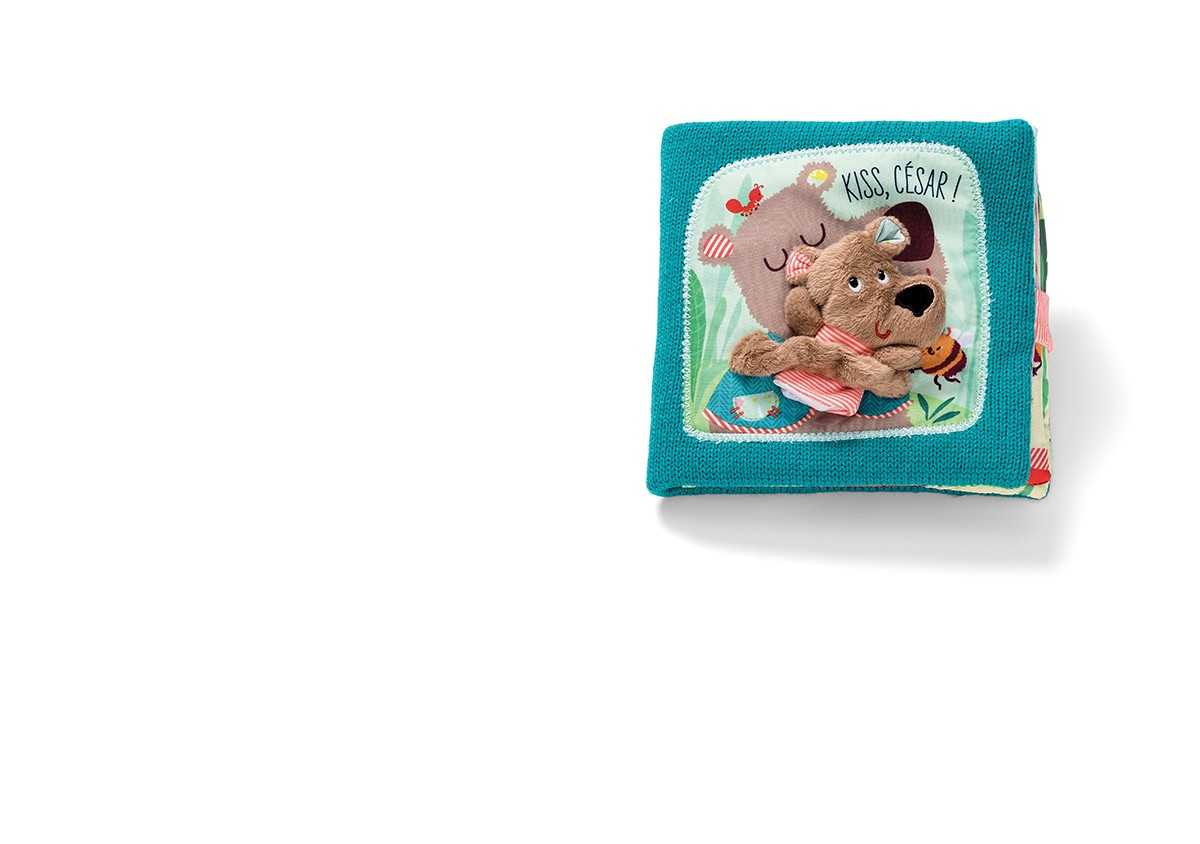 Le livre en tissu 'César câlins' de Lilliputiens est un ouvrage interactif pour les enfants dès 12 mois, racontant l'histoire de l'ours César qui embrasse ses amis avant de se coucher. Accompagné d'une marionnette à doigt et d'une page personnalisable, ce livre doux et coloré stimule l'éveil sensoriel et offre des moments de tendresse partagés.