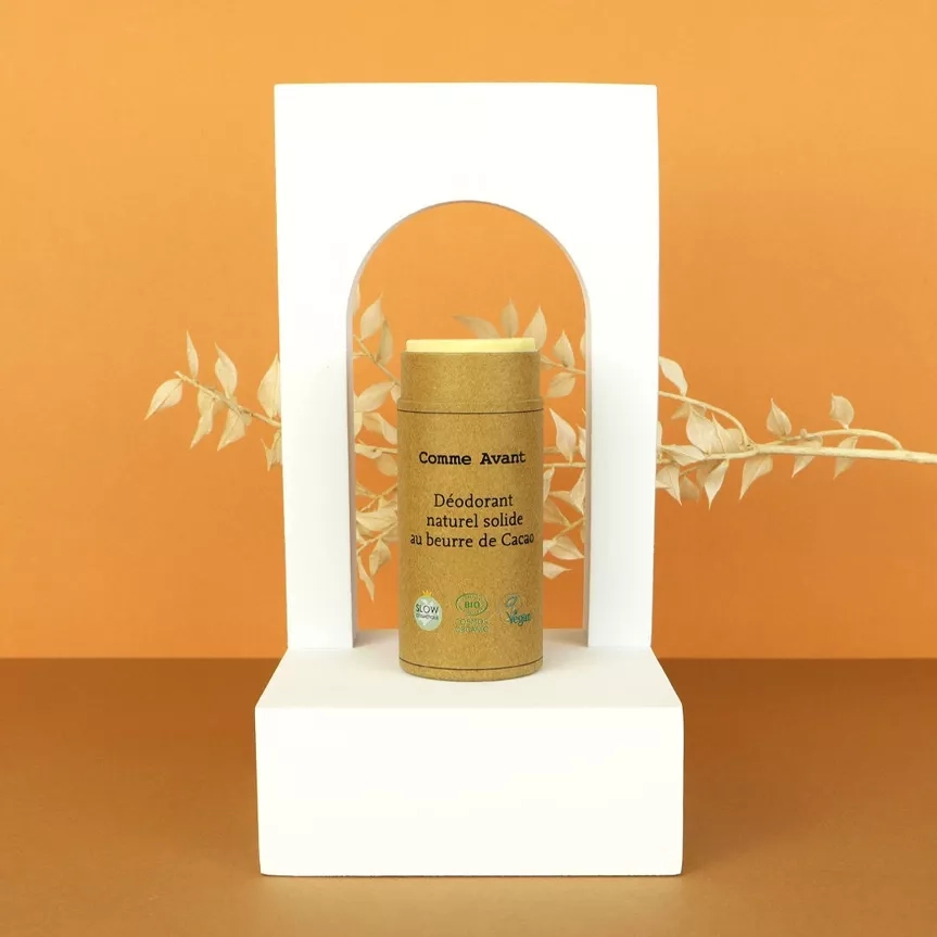 Faites le choix d'un déodorant respectueux de votre peau et de l'environnement avec le déodorant solide au beurre de cacao de Comme Avant.