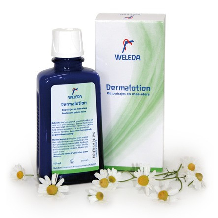 Bien nettoyer la peau, par exemple avec le Lait Nettoyant Visage à l'Amande. Appliquer la Dermalotion avec un tampon d'ouate ou un coton-tige sur les boutons et les points noirs et laisser agir. Répéter le traitement matin et soir.
