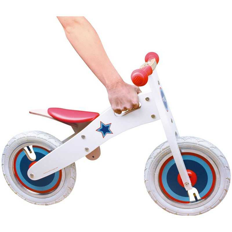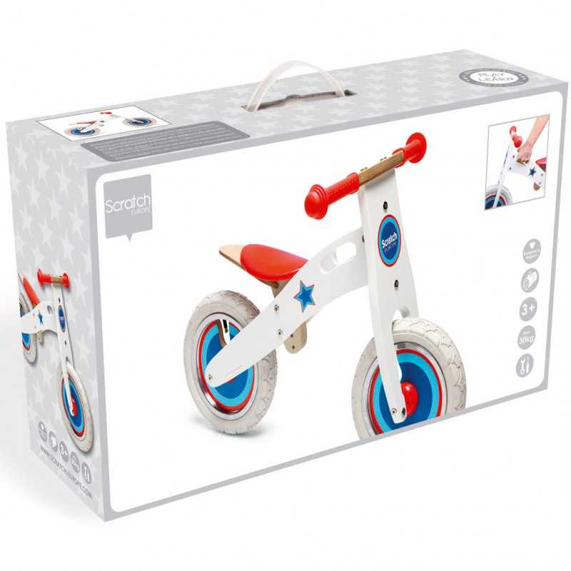 Vélo sans pédales ou draisienne en bois de Scratchqui apprendra l'équilibre à votre enfant et lui permettra par la suite d'enfourcher un vélo sans passer par les petites roues !
