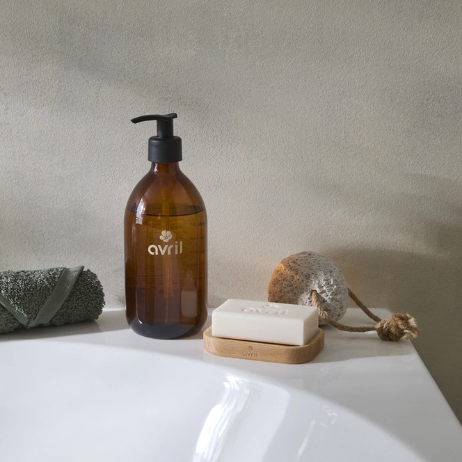 Découvrez le flacon en verre ambré de 500 ml de la marque Avril, un contenant réutilisable parfait pour stocker vos produits préférés tels que :