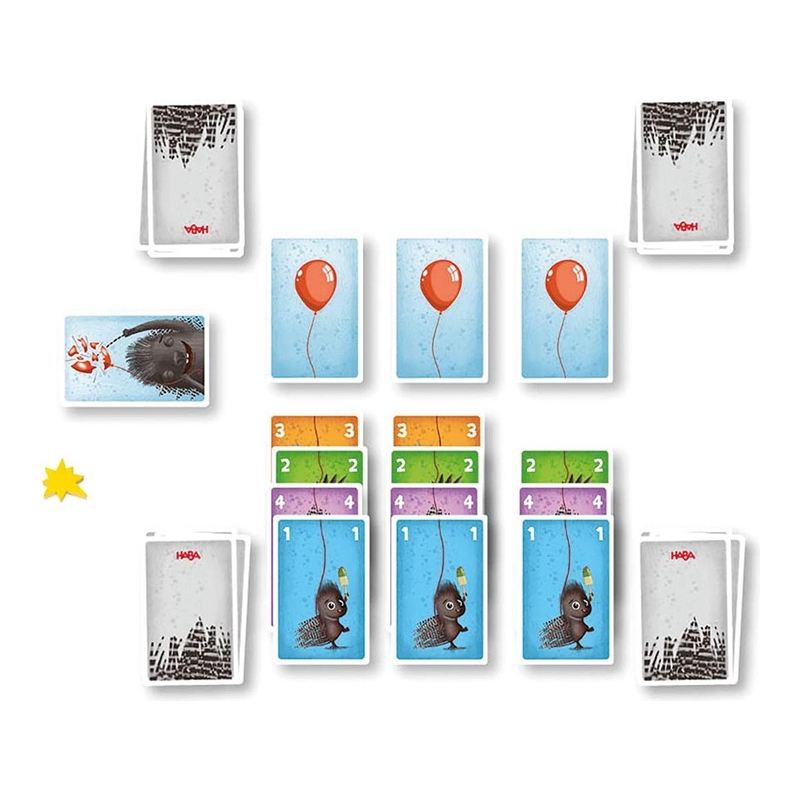 Funny Piks de HABA est un jeu de cartes rapide et amusant pour 2 à 4 joueurs dès 7 ans, où les porcs-épics éclatent des ballons pour remporter la partie.