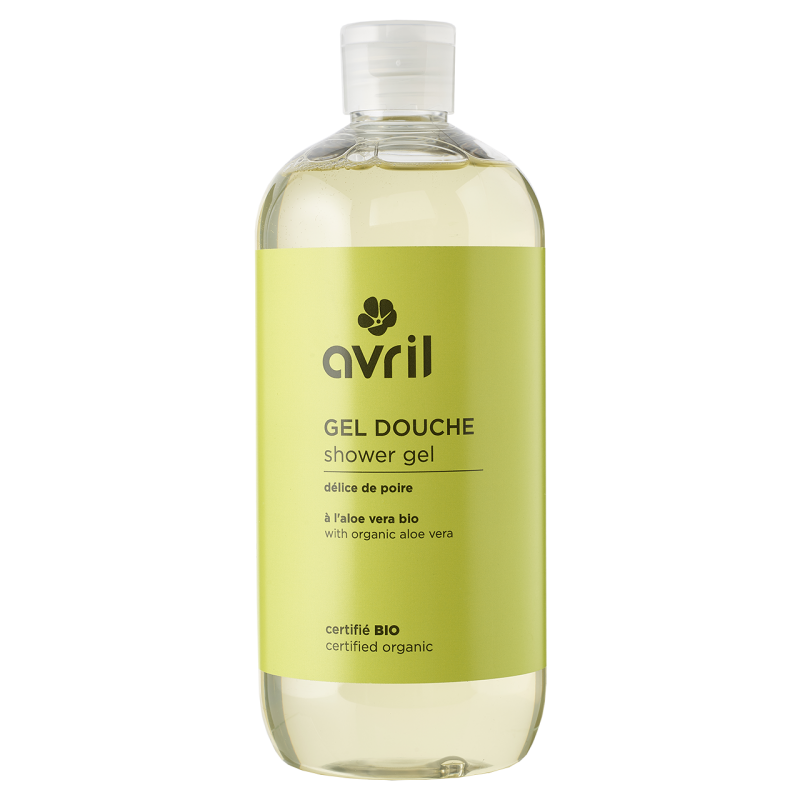 Le Gel Douche BIO Délice de Poire 500 ml d'Avril nettoie en douceur grâce à l'aloe vera bio et enveloppe la peau d'un parfum fruité de poire. Formule sans savon, pH neutre, certifiée bio et vegan. Fabriqué en France.