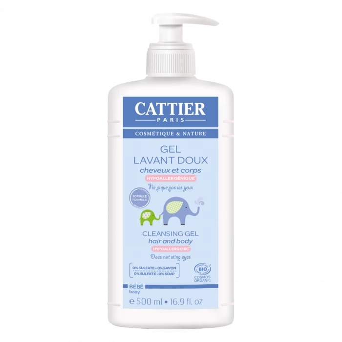 Le Gel lavant doux Cattier certifié bio est spécialement formulé pour laver en douceur les cheveux fragiles et la peau sensible de bébé. Sa formule très douce, sans sulfates ni savon, respecte l'équilibre naturel du cuir chevelu et de l'épiderme. Riche en protéines de riz, en extraits de calendula bio et d’amande douce, il laisse la peau souple et confortable et parfume délicatement bébé.