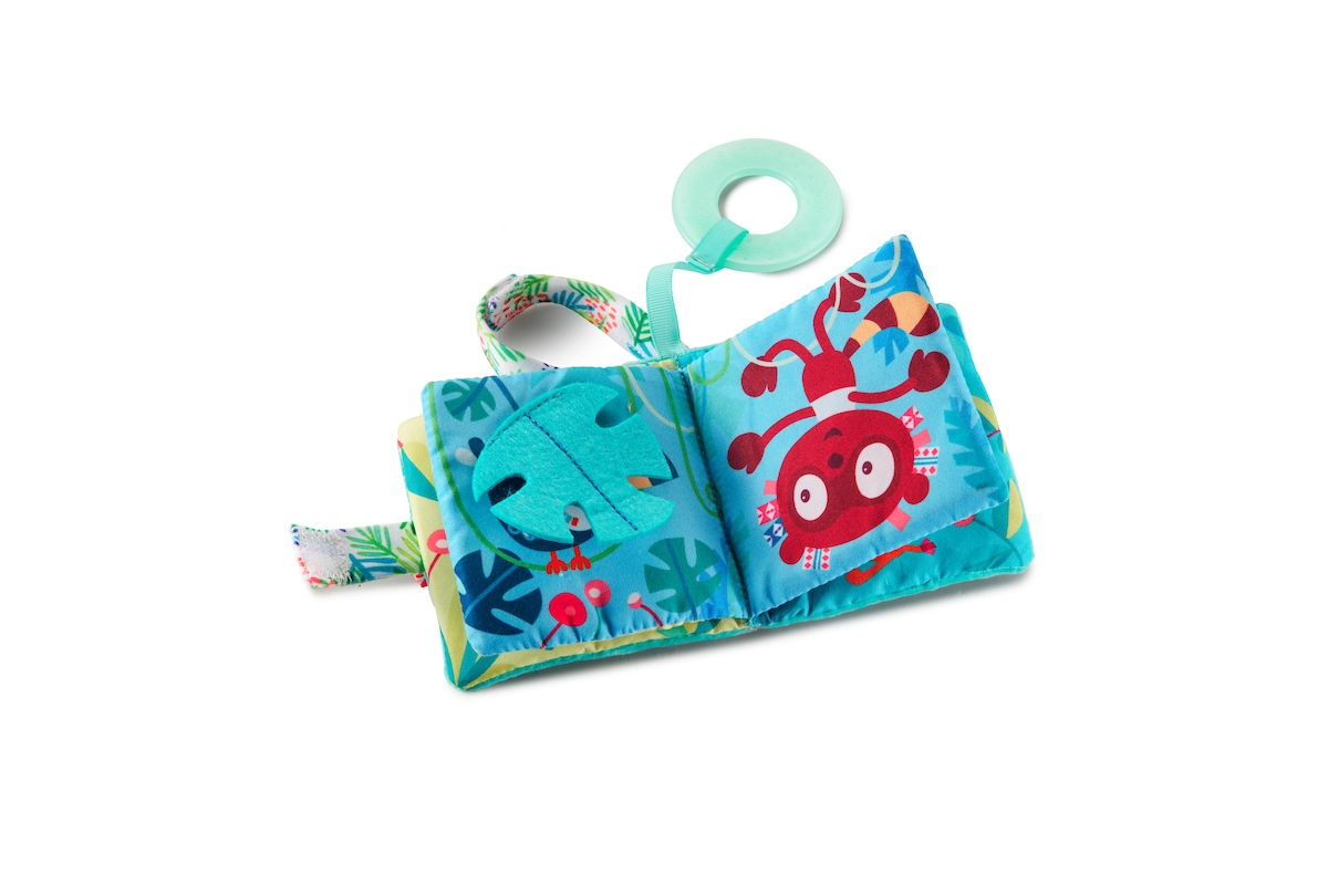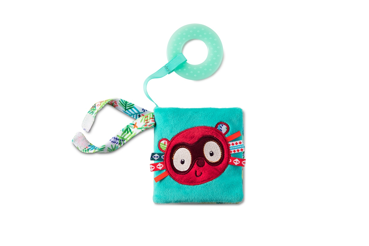 Découvrez l'imagier en tissu Georges le lémurien de Lilliputiens, un livre d'éveil sensoriel pour les bébés dès 6 mois, avec textures variées et anneau de dentition intégré.