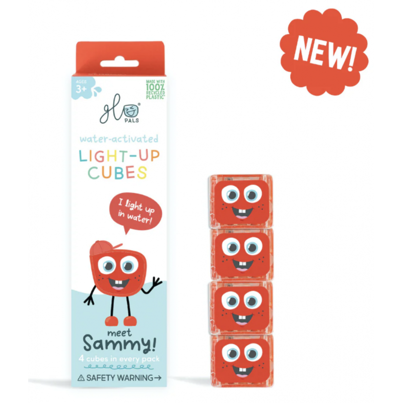 Le Glo Pal cube Sammy est un cube lumineux qui s'illumine au contact de l'eau, rendant l'heure du bain magique et amusante pour les enfants dès 3 ans.