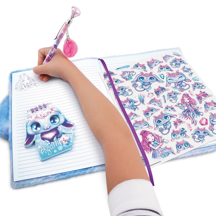 Tu adoreras écrire toutes tes histoires dans ce cahier géant en peluche ! Ton animulous préféré cache même un petit carnet dans son ventre !