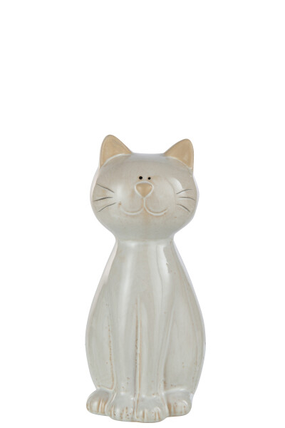 Chat Assis Porcelaine Beige Grand de la marque J-line de chez Jolipa -