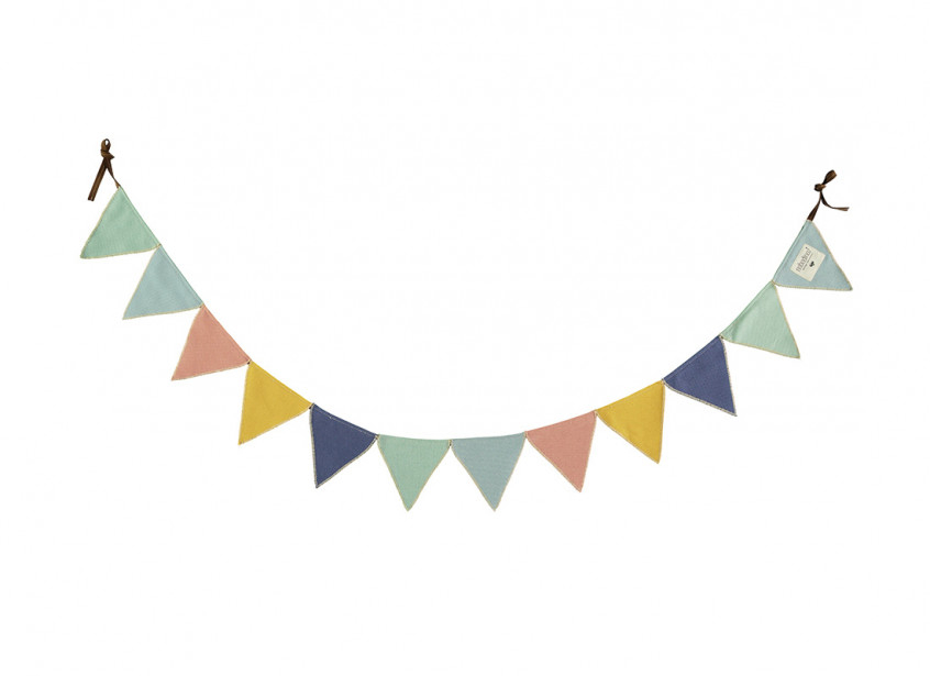 La Guirlande Bahia Rainbow de Nobodinoz est une guirlande colorée en coton certifié OEKO-TEX, idéale pour décorer chambres d'enfants et espaces festifs.