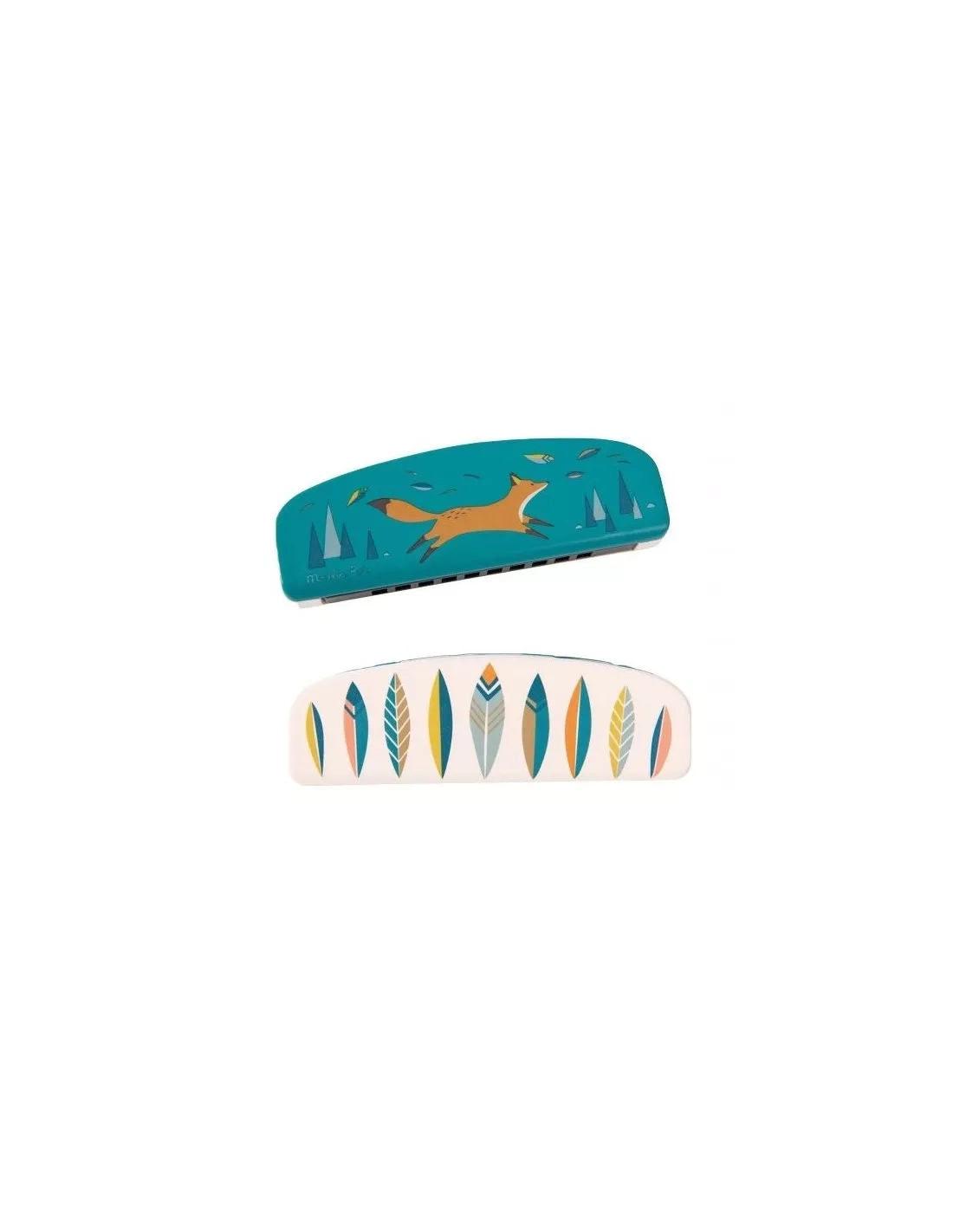Harmonica en bois illustré de la collection 'Le Voyage d'Olga' par Moulin Roty, idéal pour éveiller les enfants à la musique dès 3 ans.