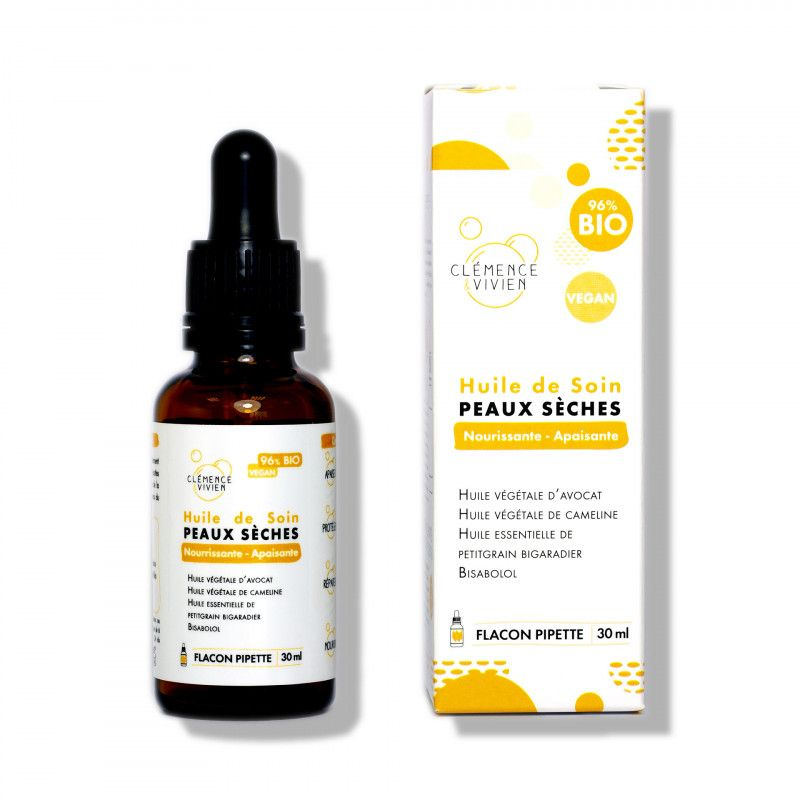 En français : huile de cameline* - huile de carthame *-- huile d’avocat* - huile de soja*- huile essentielle de petitgrain bigaradier - huile de tournesol & vitamine E** - lecithine* - bisabolol **. * issu de l’agriculture biologique** produit d’origine naturelle