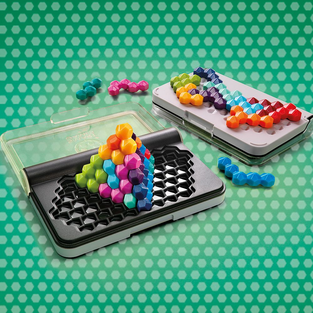 IQ Six Pro de SmartGames est un jeu de réflexion compact proposant 120 défis en 2D et 3D, idéal pour stimuler la logique et la concentration des joueurs dès 8 ans.