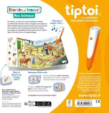 Partez à la découverte des animaux avec Mina et Robin grâce au livre interactif tiptoi® 'Cherche et trouve: Mes animaux'. Ce jeu éducatif électronique sans écran, destiné aux enfants dès 2 ans, propose des jeux de « cherche et trouve », des musiques et des informations captivantes. Fonctionne avec le lecteur tiptoi® (vendu séparément).