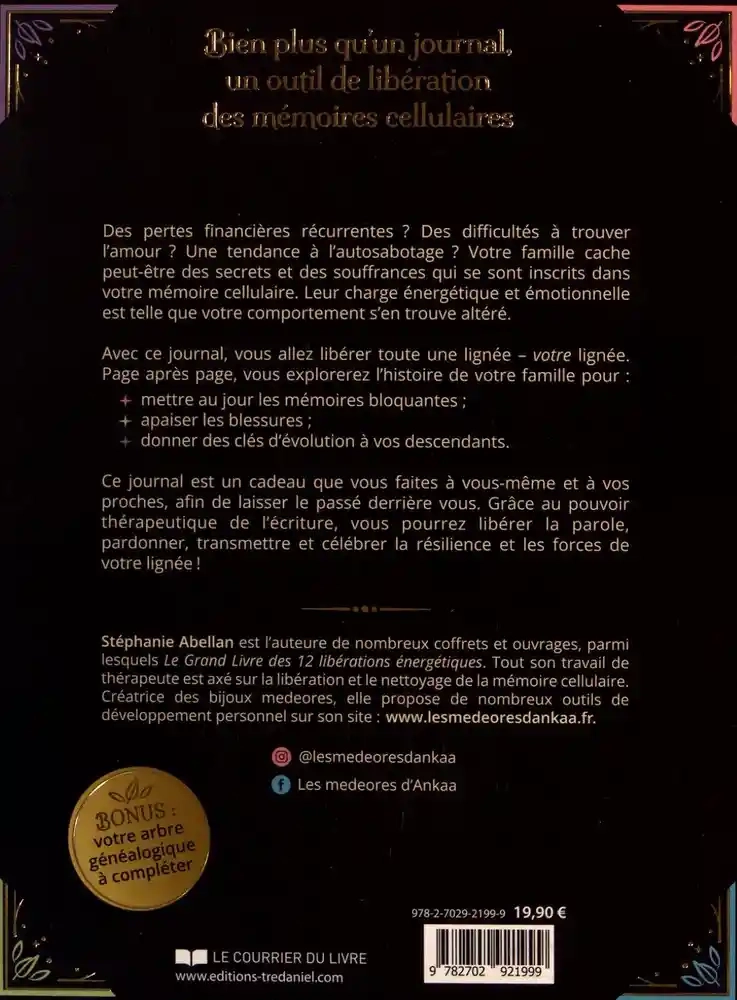 Ce journal est un cadeau que vous faites à vous-même et à vos proches, afin de laisser le passé derrière vous. Grâce au pouvoir thérapeutique de l'écriture, vous pourrez libérer la parole, pardonner, transmettre et célébrer la résilience et les forces de votre lignée !