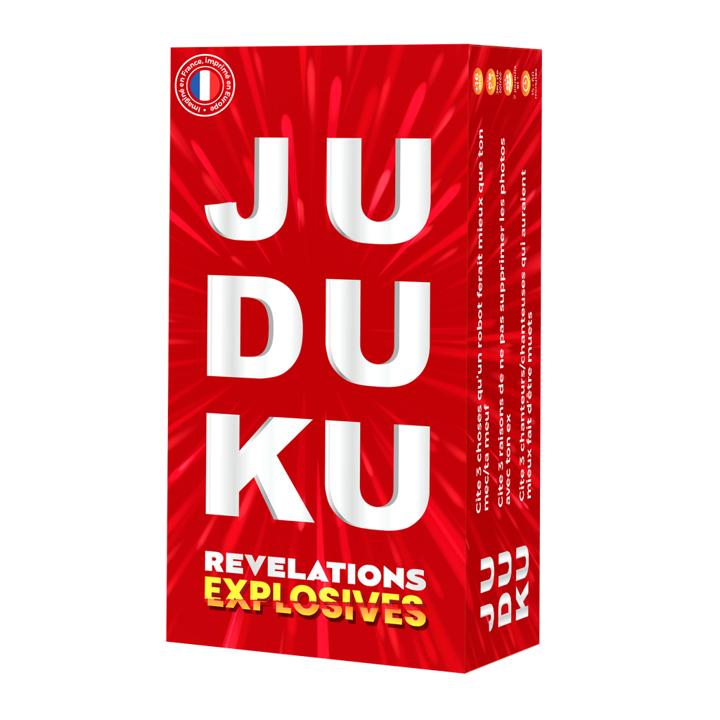 Juduku : Révélations Explosives est un jeu d'ambiance hilarant pour adultes, proposant 480 nouvelles cartes pour des soirées inoubliables.