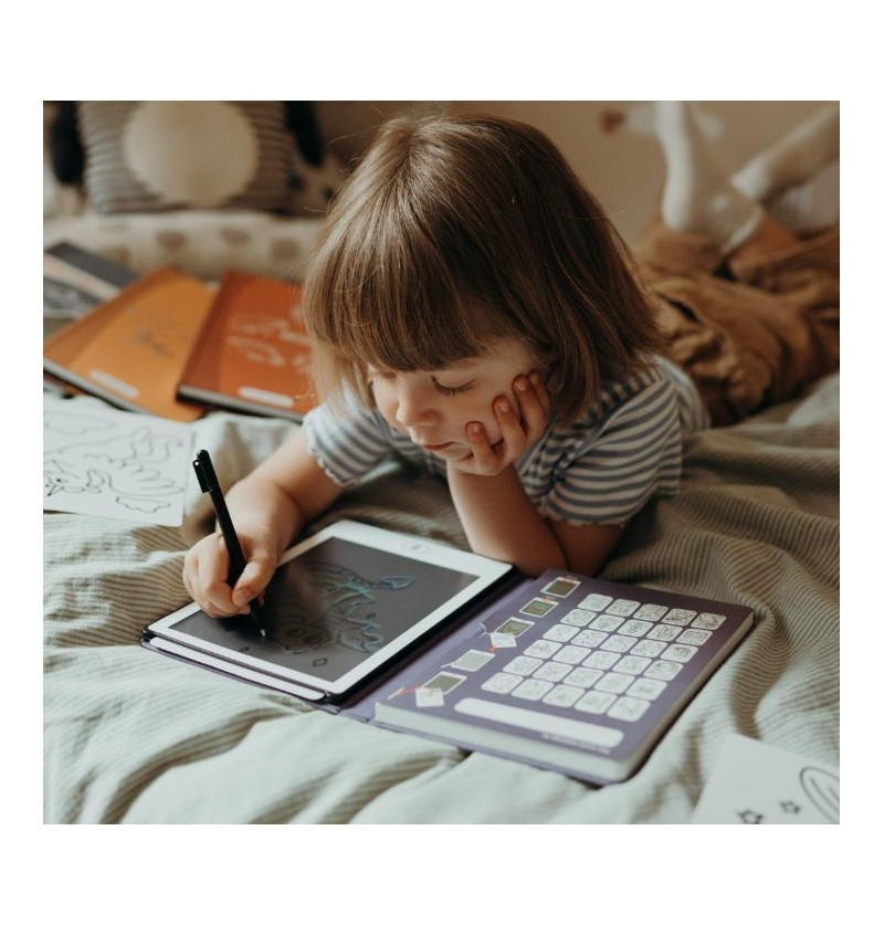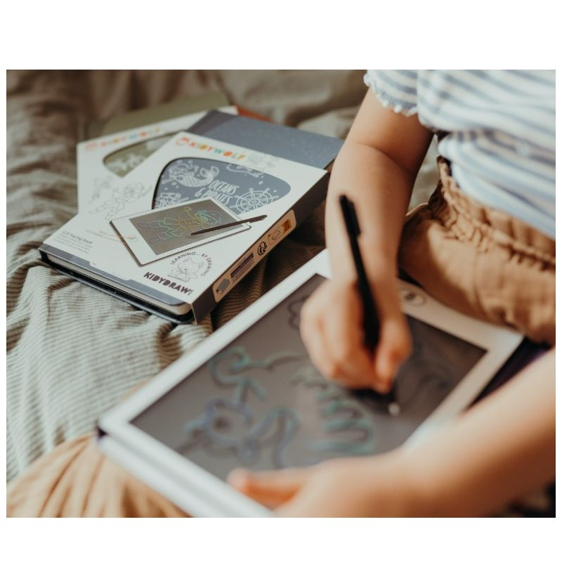 La Kidydraw Mini Dinosaures de Kidywolf est une ardoise digitale compacte offrant 30 illustrations à décalquer sur le thème des dinosaures. Avec son écran LCD de 8,2 pouces, son stylet inclus et son format léger, elle est idéale pour stimuler la créativité des enfants dès 4 ans, à la maison ou en déplacement.