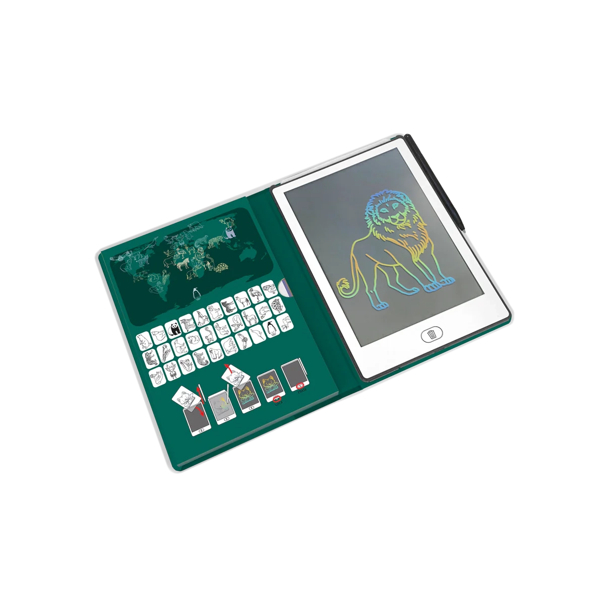 Le livre abritant l’ardoise est légèr et compact, se glissant facilement dans tous les sacs. Ainsi, votre enfant peut créer où qu’il aille, à tout moment, que ce soit en voyage, en voiture ou simplement à la maison.